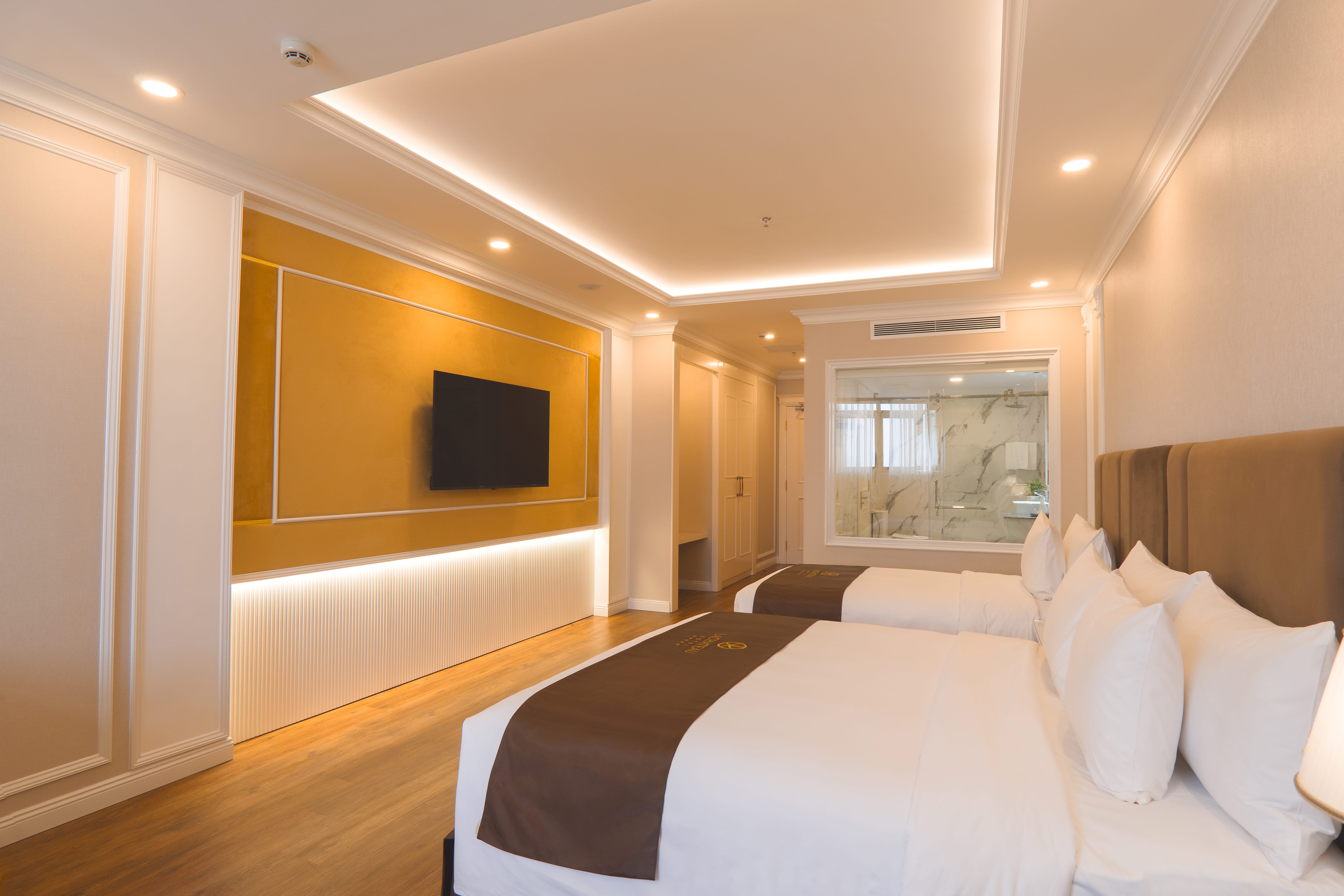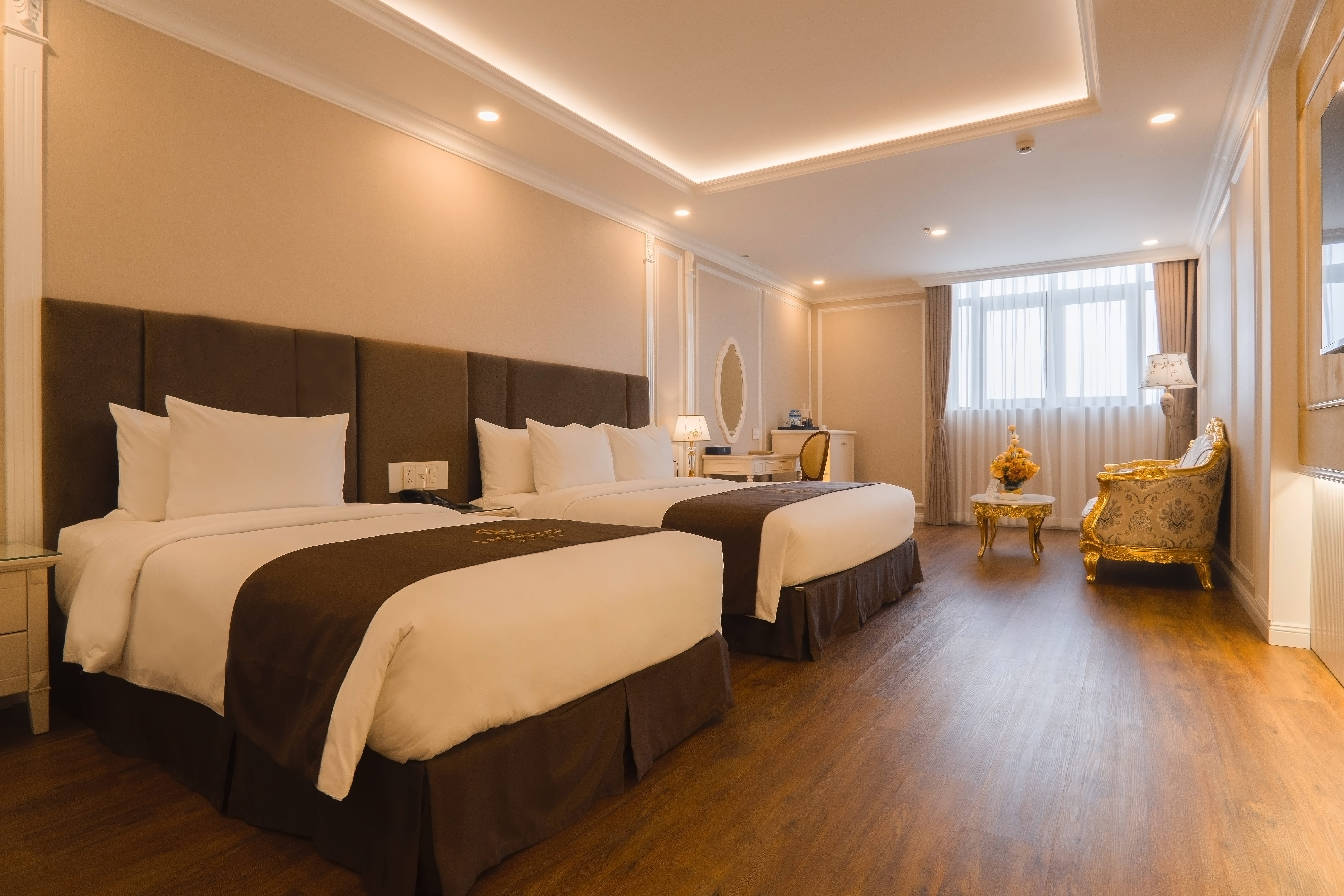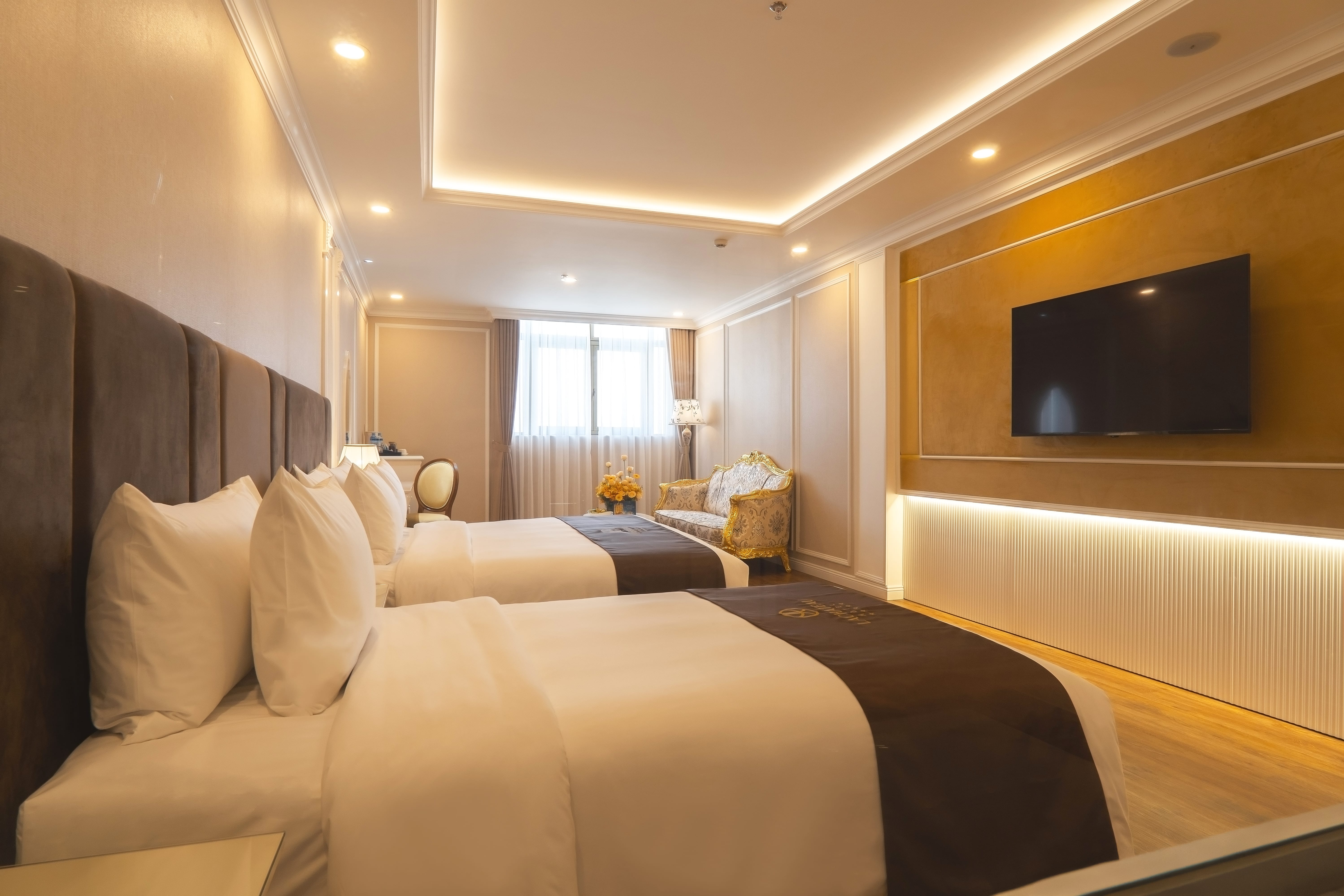 Rộng thoáng nhưng vẫn giữ được sự trang nhã, thanh lịch và ấm cúng, phòng Lachateau Junior Triple mang đến không gian lý tưởng cho sự sẻ chia và kết nối. Với thiết kế sang trọng, nội thất tinh tế cùng tiện nghi cao cấp, căn phòng nâng niu từng khoảnh khắc thư giãn và riêng tư bên những người thân yêu bằng những trải nghiệm trọn vẹn, đáng nhớ.